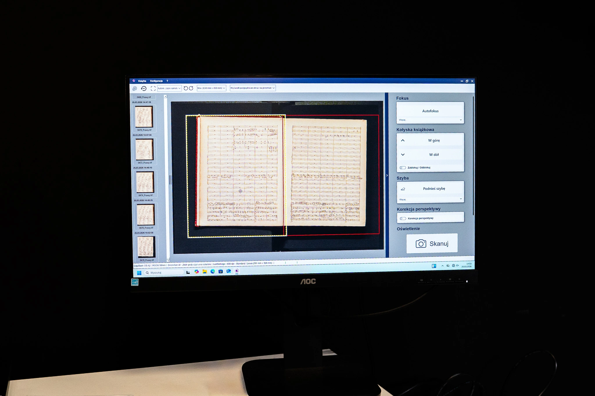 Do pracowni digitalizacji w ramach projektu zakupiliśmy trzy nowe urządzenia, które usprawnią prace zespołu i umożliwią uzyskanie najwyższej jakości odbitek cyfrowych. Skaner CopiBook OS A2 XD 600 dpi gwarantuje bezpieczną digitalizację książek, czasopism i dokumentów do formatu A2 na stole szalkowym, umożliwiającym dopasowanie do grzbietu książki, co zapewnia stabilne ułożenie materiałów podczas pracy. Urządzenie oferuje bardzo wysoką jakość skanów do 600 dpi oraz szybkie przetwarzanie i automatyczną obróbkę obrazu, co znacząco usprawnia profesjonalną digitalizację zbiorów.
